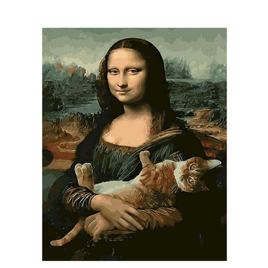 Whether you're a beginner or an experienced artist, this paint-by-number kit offers you an exceptional opportunity to connect with art in a new and inspiring way. Order now and immerse yourself in the enchanting world of the Mona Lisa with cat. Let your creativity flow and create a work of art that will turn heads and spark exciting conversations.